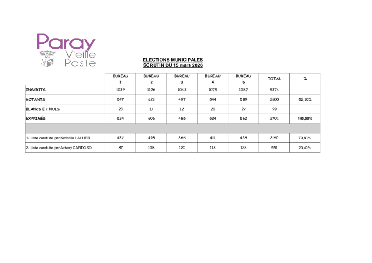 Retrouvez ci-dessous les résultats du scrutin du 15 mars 2026 :